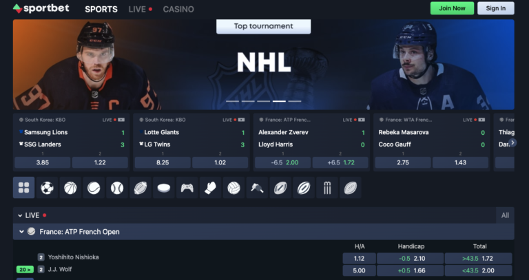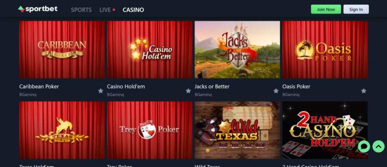 Sportbet.one opts for a dark, blue-grey minimalist look with a sticky top bar (Sports, Live, Casino) that remains visible as you scroll, so hopping between verticals never feels disorienting or cluttered.
